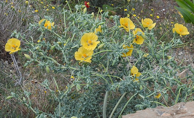 - Length: ~30β60 cm tall, with grey-green leaves and bright yellow poppy blooms.